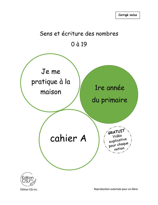 1re année Sens et écriture des nombres - CAHIER A (Numérique)