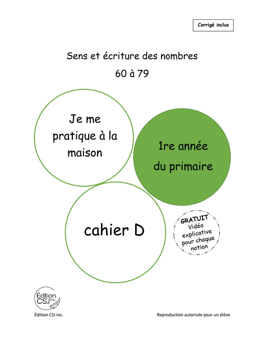 1re année Sens et écriture des nombres - CAHIER D (Numérique)