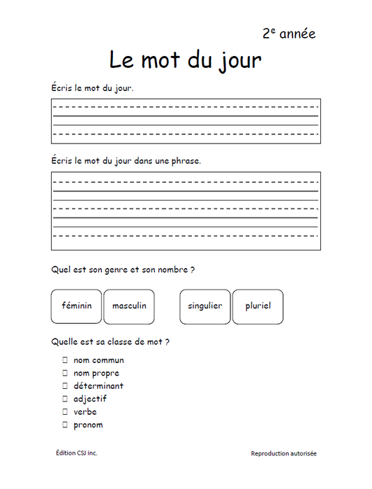 2e année Le mot du jour (Numérique)