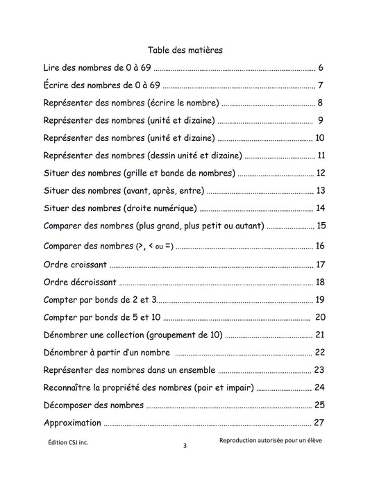1re année Sens et écriture des nombres - CAHIER C