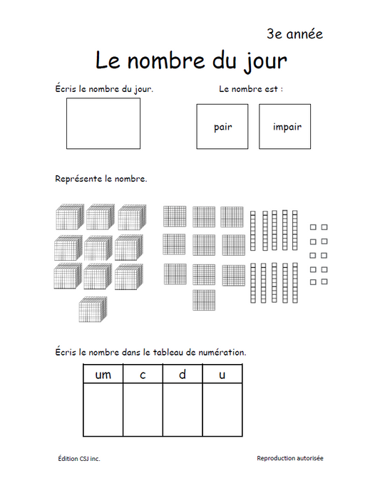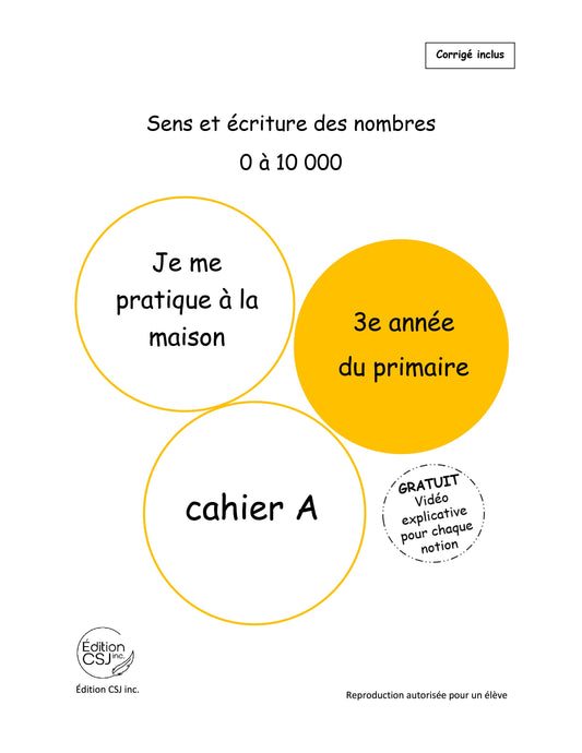 3e année Sens et écriture des nombres - CAHIER A (Numérique)