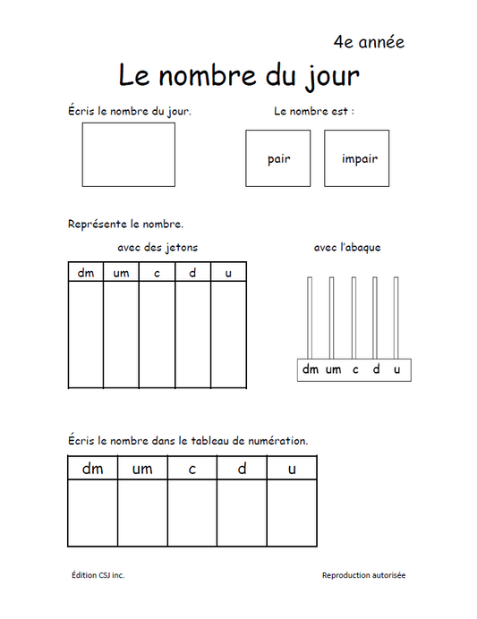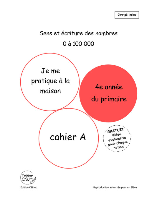 4e année Sens et écriture des nombres - CAHIER A (Numérique)
