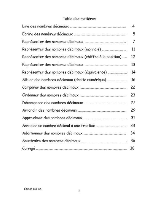 3e année Les nombres décimaux - CAHIER A (Numérique)