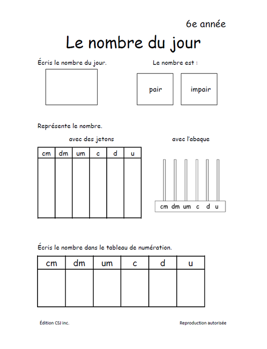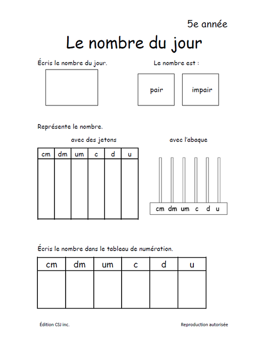 5e année Sens et écriture des nombres - CAHIER A (Numérique)